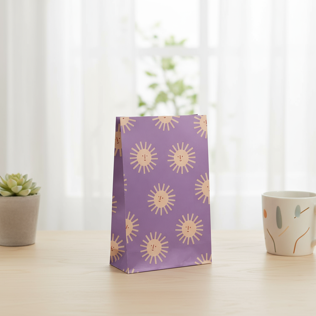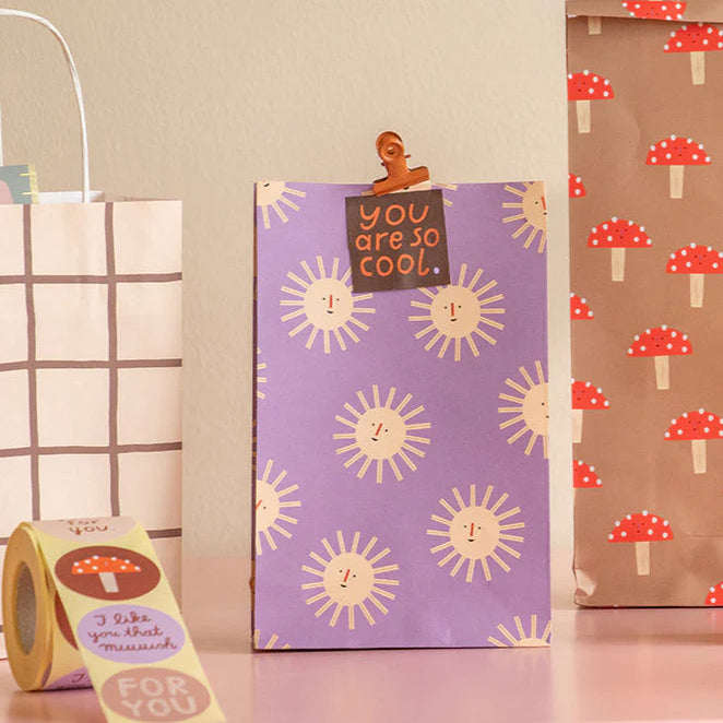 Papírové sáčky s blokovým dnem z designové kolekce Sun od ilustrátorky Anna Katharina Jansen zaujmou pozitivním a hravým vzhledem.