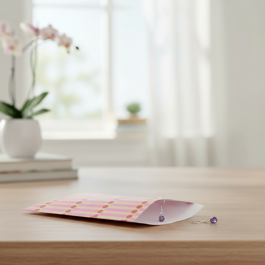 Dárkové papírové sáčky Kado Design v jemných a výrazných tónech – vanilková, šeříková a maková červená – jsou perfektním doplňkem pro balení drobností, malých dárků nebo jako stylový obal do prodejny. Tyto ploché sáčky jsou potištěny výrazným geometrickým vzorem a díky kvalitnímu papíru se snadno skládají, drží tvar a vypadají skvěle na každém pultě i stole.