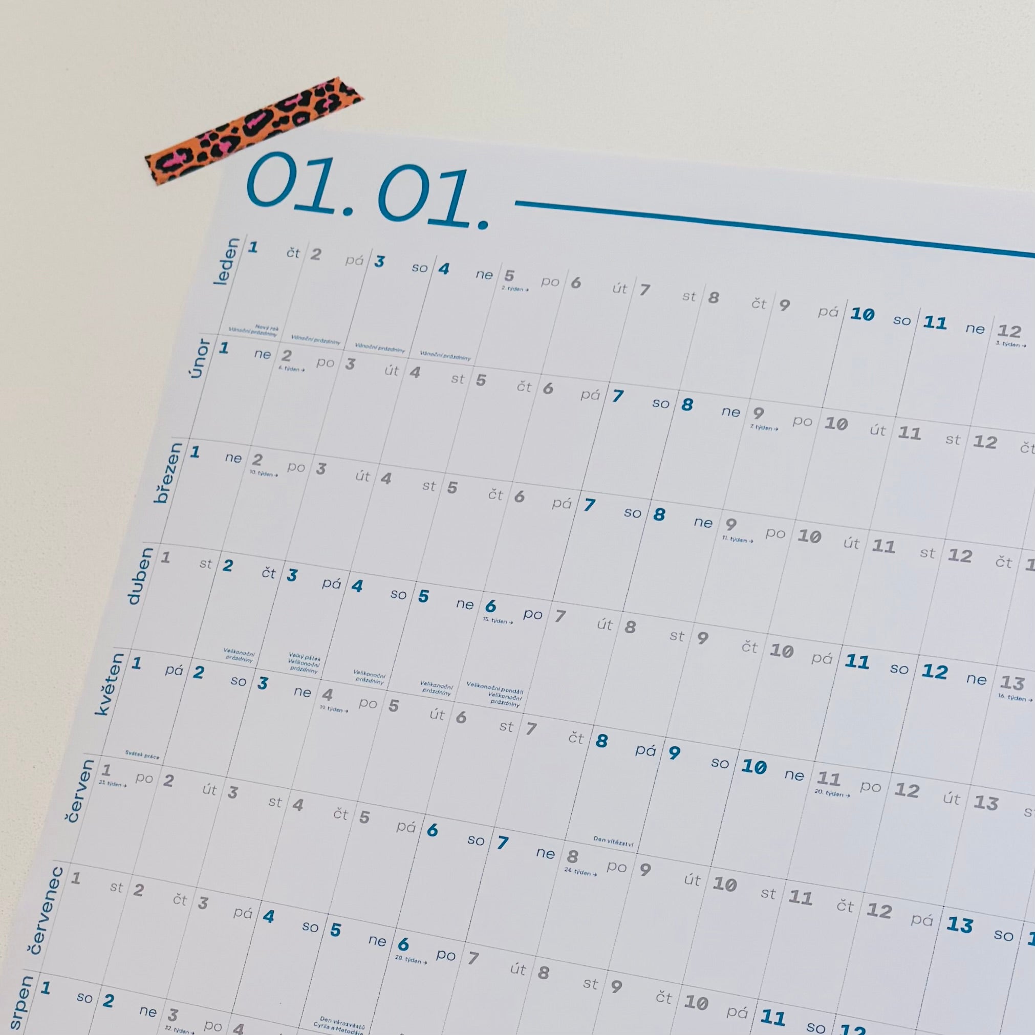 Nástěnný plánovač z dílny woohoo je opět na světě. Tentokrát v novém formátu… větší, s přehledem prázdnin a svátků, očíslované týdny samozřejmostí 😉